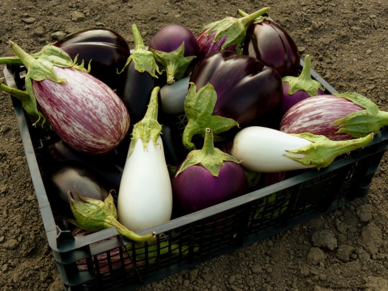Many of the European cultivars have thicker skin and either more or larger seeds so are more bitter. They also have a firmer texture than their Asian cousins so when squeezed, they only give a little when ripe. Don’t wait for your eggplants to be the same size as the ones in the supermarket; always let the shine and texture determine the right time to harvest.
