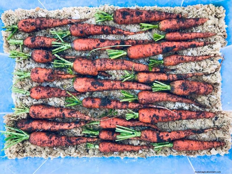 Both sand and sawdust work well for this method, and I’ve read that dried leaves might work as well. I use sawdust because it’s easily available and also because of its antibacterial and antifungal properties. This way, even if a carrot tends to go bad, it doesn’t affect the rest of the crop.