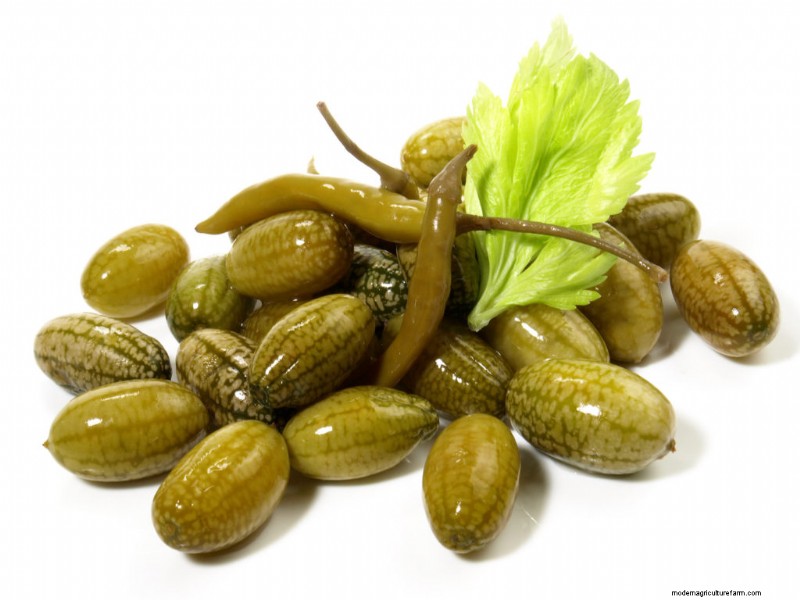In a container, one plant can produce 25-30 fruits in good compost, which would make easily enough for a pickle jar, with enough left over for salads a few weeks later.