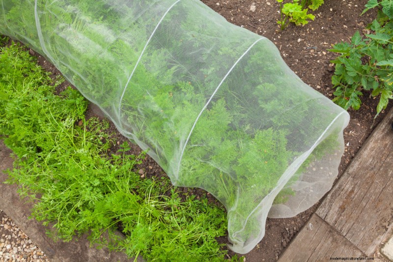 Carrot Root Fly are weak fliers. They tend to fly lower than 75cm from the ground and climb walls and fences to move between gardens. Because of this, mosquito net fences are usually a very effective control measure. If they can’t get to your carrots, they can’t lay eggs. Sadly, like all flies, they walk too, so you have to take the extra measure of burying the edges of your net at least 5cm deep.