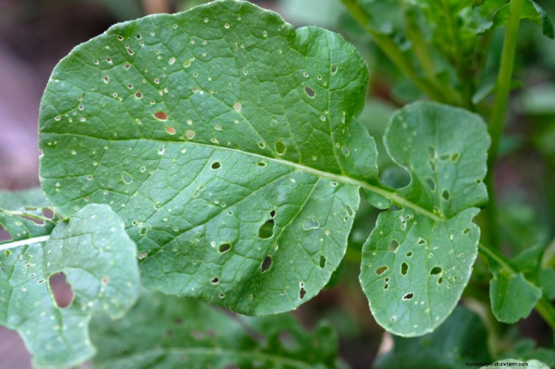 The first thing you’ll probably notice when dealing with flea beetles is the damage they can quickly plague your crops with – tiny holes everywhere. When touching the plant, you’ll notice these beetles jumping off all at once, like fleas jumping off a stray cat – hence the “flea” nickname.