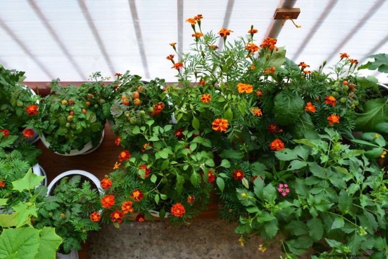 As the marigolds grow to fill in the space, they will slow and deter pest travel between in-row crops and dissimilar plants in the garden.