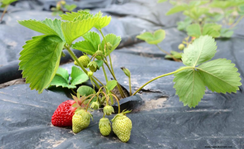 Give strawberries at least one inch of water per week, but no more than two inches. If you’re not sure how much your outdoor-grown berries are getting, use a rain gauge. Mulch strawberries with woodchips or straw, or use landscape fabric, to help retain moisture and suppress weeds.