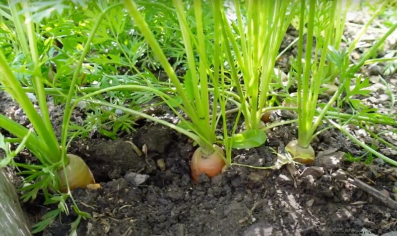 One way to tell if it’s harvest time is to look at the shoulders of your carrots. The shoulders are the top of the carrot which will often start to pop out of the ground when they are big enough.