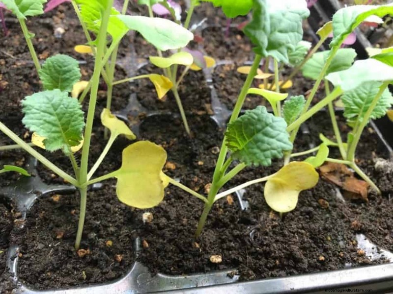 These plants might be showing signs of yellowing because it’s too warm inside, and it’s high time you transplanted them outdoors. Generally, 4 to 6 weeks is perfect timing for planting these seedlings outside, but you can transplant them even sooner, and they’ll adapt much faster than older plants.