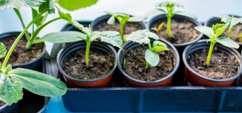 The best containers to start cucumber seedlings in are 2.5 to 3-inch nursery pots with plenty of drainage holes. Cucumbers grow into large seedlings, and since they will be spending about 3 weeks in our growing setup, it’s best to give them plenty of space.