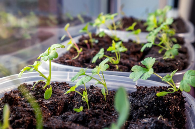 At this stage, the young seedlings will need plenty of compost in the potting mix to feed them for the time they’ll be spending indoors.