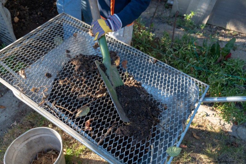 I strongly recommend sifting your old compost / potting soil. This does more than just break it up. By sifting, you can keep an eye on the contents – a chance to remove large rocks, grubs, pieces of plastic, or anything that doesn’t belong there. Does your compost still have worms in it? That’s a good sign, and make sure to toss them back in, as well as the small roots you might find.