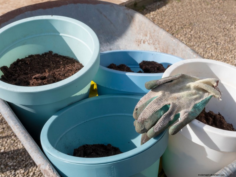 So now that you’re convinced to give this a go, let’s dig in! You can either rejuvenate old compost or at least fluff it up, but there are a couple of things you need to do before reusing it. Gather all your containers and start emptying them out in a wheelbarrow or a large tarp.