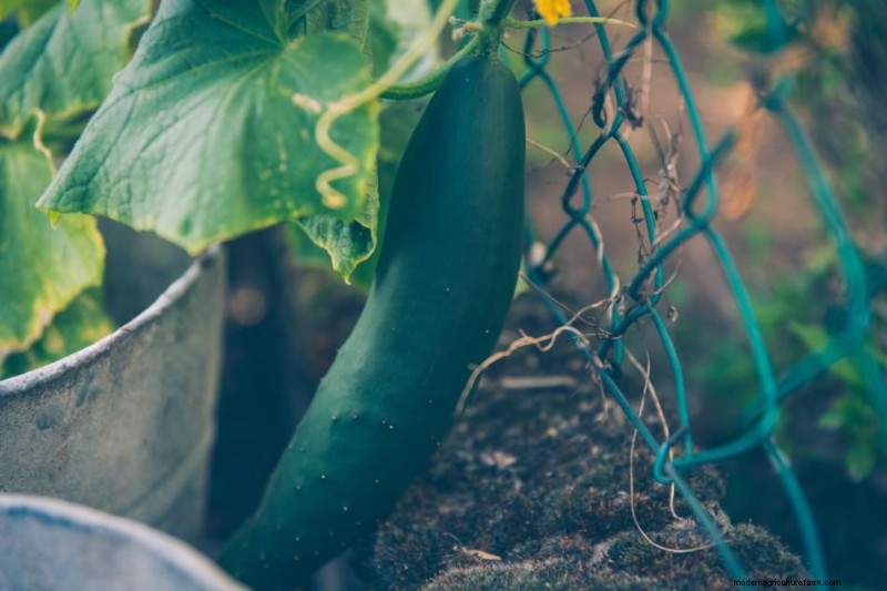 Cucumbers are typically grown on sturdy vertical structures, and we train them to climb vertically for ease of picking so that the fruits don’t rot on the ground.