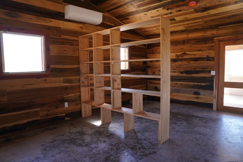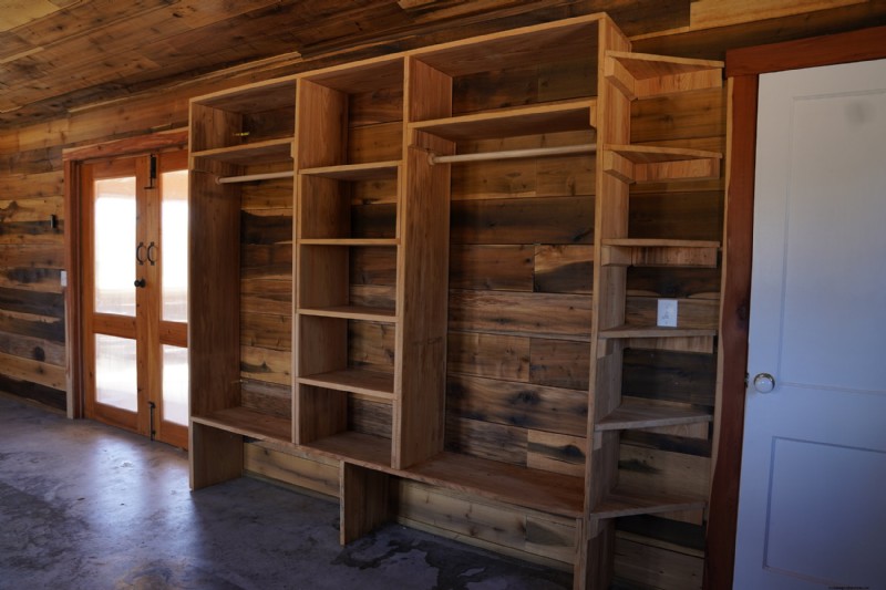 Shelving is a crucial component to the Climate Cabin. The interior of the cabin is a small space (600 square feet plus 78 square feet for the bathroom), so Mike is installing as much shelving as he can practically and aesthetically fit in the space for us to store our belongings.