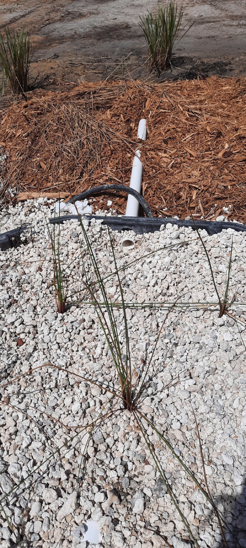 Once the reed bed fills with water, there is an overflow hose that connects reed bed #1 to a mulch pit planted with water-loving plants like bananas and yautia. After water has filtered all the way through reed bed #1, it empties into the mulch pit through the PVC overflow pipe. This gives the water one last cleansing before it can safely integrate into the landscape.