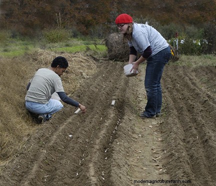 After the garlic is in the ground, use a paddle hoe to cover the garlic and level the trenches. The next crucial step is to LABEL your newly-planted garlic, as it will be some time before harvest.