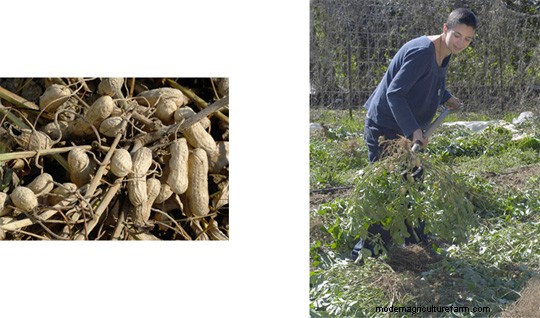 Be aware–peanuts need shallow weeding. You could damage them by digging too deeply into the ground where they are are developing. When the plant begins to flower, pegs will drop into the ground under the flower and produce peanuts. Hand-weeding is the only option after the peanut pegs.