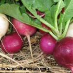 The Easter Egg radish is a great way to add some color to your late spring salads since these radishes range in color from a deeply saturated purple to bright pink and white skins and uniform white flesh. The radishes have a light peppery taste behind their crispy texture.
