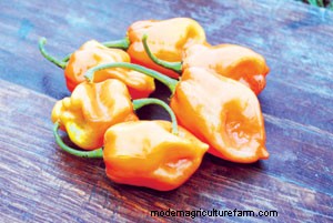 We carry seeds for three of the chiles they track in the book – Habaneros (the Yucatan), Fish Peppers (Chesapeake Bay area) (sold out for this year), and Jimmy Nardello’s (from Italy via Connecticut).
