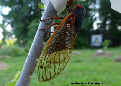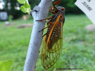The 17-year cicadas are starting to lay eggs in young tree branches on our farm in central Virginia. We’re not worried about any effects of the cicadas on our gardens, and trees of significant size will at least survive.