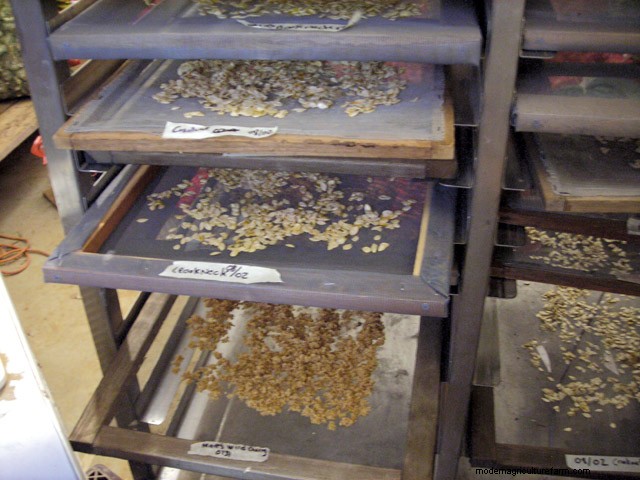 Growing seeds can be a great supplemental source of income for many farmers, but it isn’t a way to get rich quick. It can work well even on a very small scale, but requires isolation from other varieties of the same species. Isolation distances for commercial growing are much greater than those in our Seed-Saving for Home Use handout. For example, commercial seed crops of tomatoes, peppers and beans should each be isolated from other crops of the same species by at least 150 feet. Isolation from GMO crops is particularly important. On a small or medium scale, including most of the grow-outs farmers do for us, most seeds can be harvested and cleaned with minimal equipment.