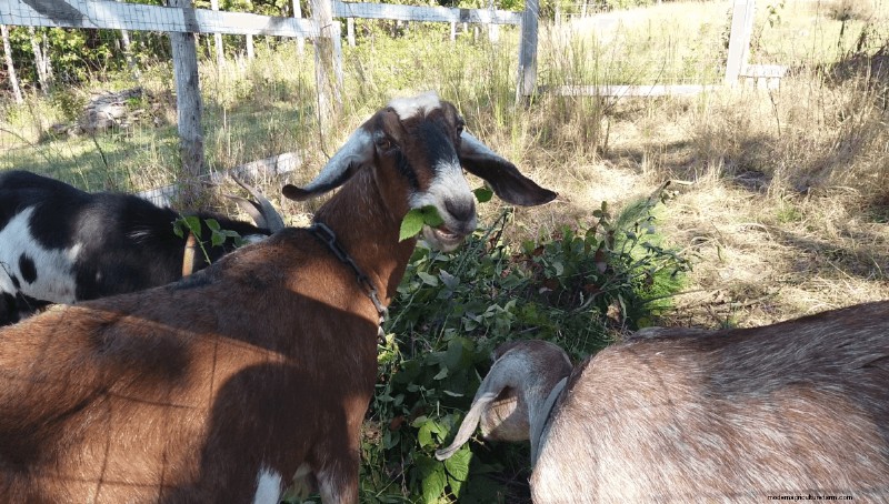 So whether you’ve harvested a batch of berries and are trying to think of what to do with them, or haven’t plucked these tasty fruits since you were knee-high to a grasshopper, I hope your summer will be filled with luscious fruits and not too many scratches. On my homestead, as I’m sure must be true on many others, the never-ending encroachment of the wild blackberry bushes eventually get their just desserts. Though that razor-wire of brambly canes crowding our forest path may have sliced me all summer, once the berries have been picked and the last of their good, fresh growth has been plucked for tea, out come the pruners, wheelbarrows, and gloves. My goats are very happy to have the last laugh.