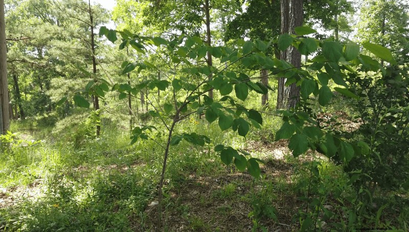 It was a beautifully shaped, open grown tree with scalloped alternate leaves that I couldn’t identify offhand (because mulberry trees come in several different shapes). I knew sassafras had three leaf shapes, but this tree clearly wasn’t sassafras. And, weirdest of all, it was positively dripping with a bounty of berries that for all the world, looked like blackberries. But a full-on blackberry tree? That couldn’t be right.