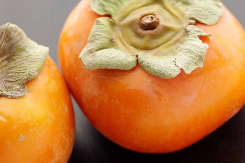 When choosing persimmons, look for ones that are deep red or orange, have glossy, smooth skin and have their green leaves intact.