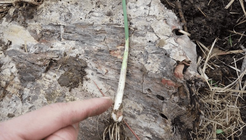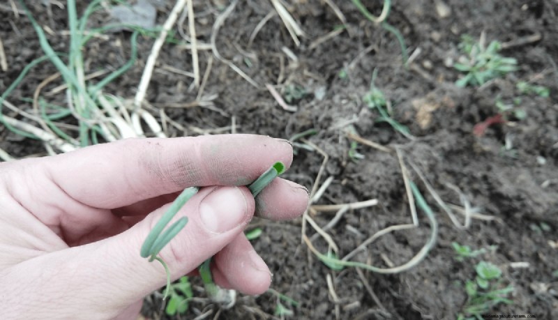 In the early spring, garlic is often the first plant to appear green in what is likely an area of dried brown grasses. It may look like grass at first, but the earliest growth often has wonderland-like curlicues. And if you inspect a clump of it more closely, you’ll soon see that each leaf is a distinctive round, straw-like tube — not a flat blade-like grass. As with every member of the onion family, these leaves have a strong, distinctive oniony smell when broken.