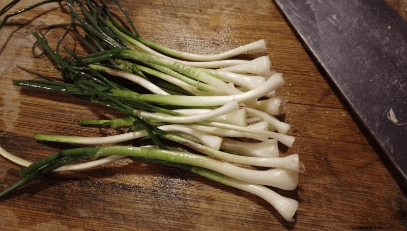 Beneath all that upper growth, there is a white bulb, usually firmly rooted, growing a few inches under the soil. It’s much, much smaller than any garlic bulb, and has a great flavor. Usually, when talking about wild bulbs, this is the part where I should caution you about overharvesting, and advocate for not removing bulbs. But since field garlic is invasive, and since harvesting the bulb often loosens tiny side-grown bulblets and leaves them behind to grow next year, there’s little chance you’ll eradicate field garlic when harvesting … even if you tried.