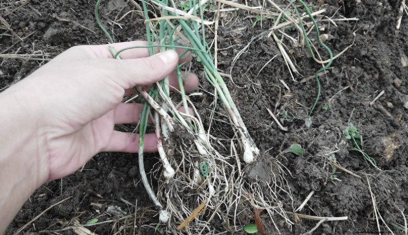 If you’re looking for a more substantial amount of food and don’t mind digging, you can, of course, dig up the whole plant. It usually does require digging — at least in my area, the bulbs tenaciously stick in the ground and only can be pulled up once the soil has been loosened. I usually employ a hori-hori knife around the whole clump and spend some time wiggling it around before I try to pull. If you pull too soon, the leaves will break off, and then you’ll have to try to get the bulbs out without a helpful handle. Bulbs can be dug at any point of the year, but they’ll be biggest in summer after the field garlic leaves have browned. Whenever you dig your field garlic, be sure to fill the hole back in when you’re done.