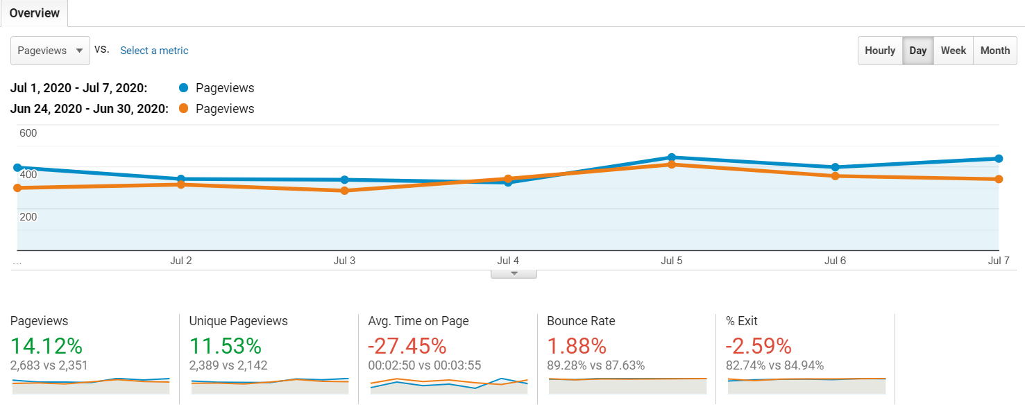 I’ve been combining Debbie and Victoria’s SEO tips with Carly’s updated Pinterest strategies and my page views have increased already by 14% over the last 7 days! (July 1 through July 7).