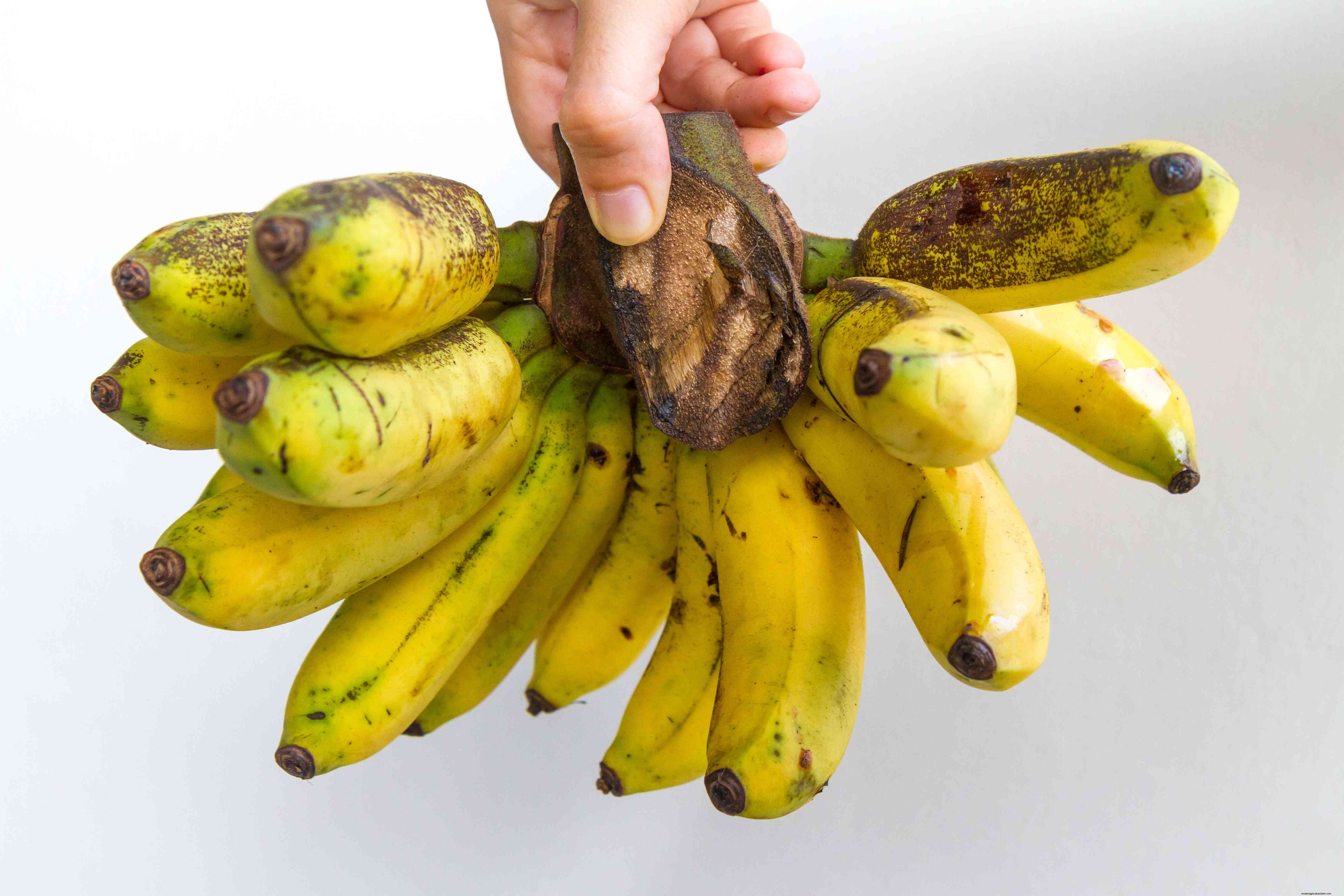 Tasty and sweet Ladyfinger bananas, which are about the size of a human thumb but a bit thicker, are just one type that could expand what we think of this fruit. There are also red-skinned bananas that turn pink with spots when ripe, called red guineo morado, which have a creamy texture and are orange in the center. There are even bananas that are tart and some say taste like apples.