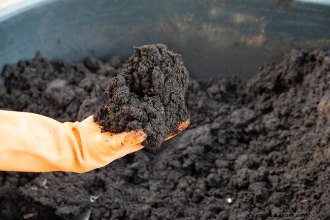 Composted manure should look more like soil, with a dark and crumbly texture. It will have lost any unpleasant odor and instead have a pleasant organic smell.