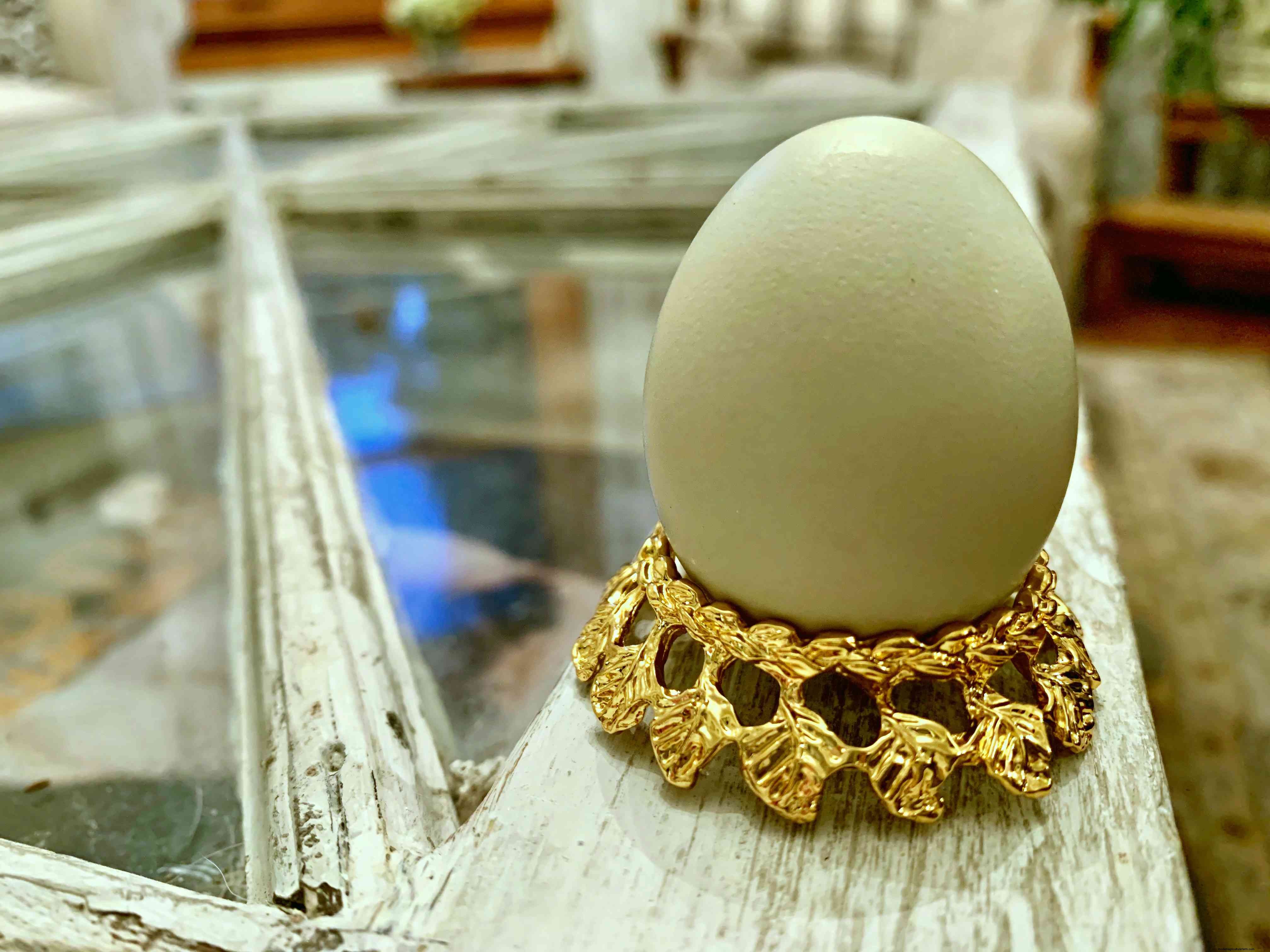 We snuggled with Terry to congratulate her on a job well done and forced her to pose with us for an inordinate number of selfies. We updated our life status on Facebook, and quickly garnered more than 100 "Likes." Elizabeth brought the egg inside and propped it on a special gold-encrusted egg holder she'd bought on eBay. The egg, for now, would be on display — first in our sunroom, where the windows provide good lighting for another round of photos, then to our living room so we could stare at it from the comfort of the couch. Eventually, as night and weariness overcame us, the egg display would be moved to our bedroom, so it would be the last thing we saw as we drifted off to sleep and the first thing we saw in the morning.