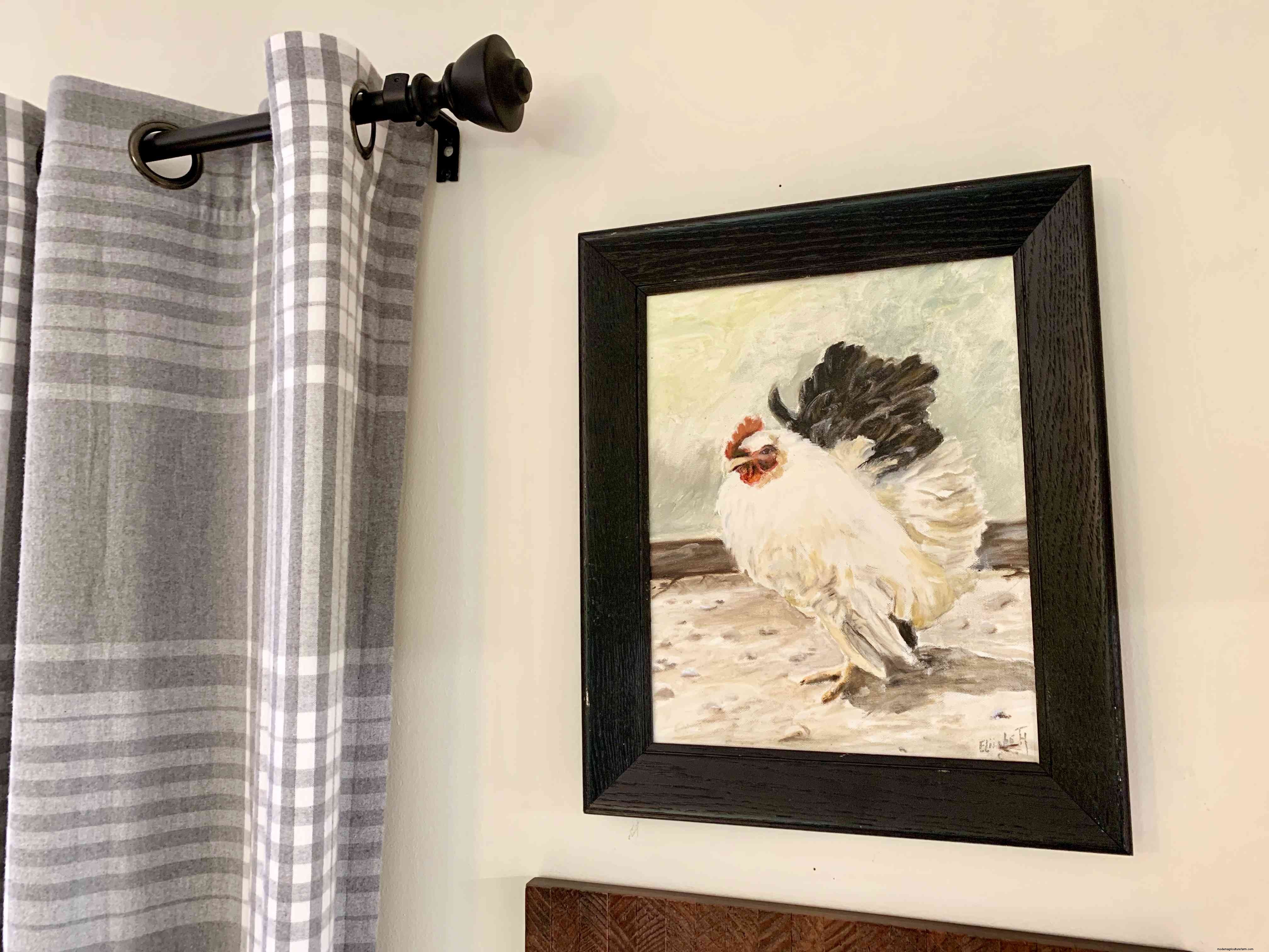 She reminisced about the conures and cockatiels she had growing up. At some point, I also noticed that she had hung an oil painting of a chicken in our living room. She claimed her poultry plans are destiny. (This painting also helped me realize that I should probably play a more active role in picking out the art for our home.)