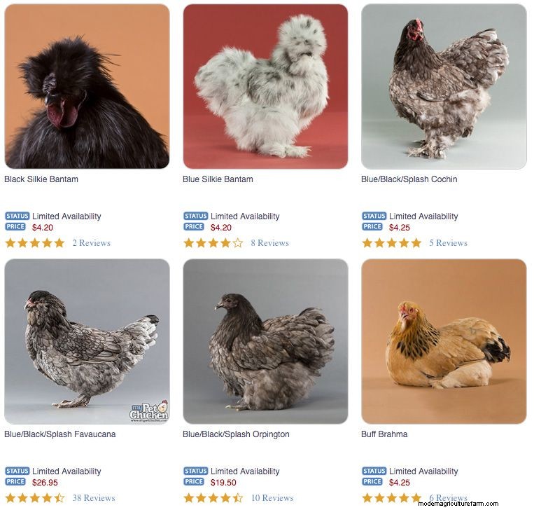 The site has them organized by categories: Breeds that are particularly friendly, breeds that are rare, breeds that lay chocolate eggs. You simply choose the ones you want, put them in your shopping cart and you're good to go. It's the Amazon Prime of chicken shopping.