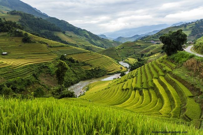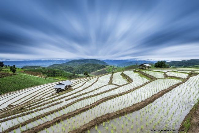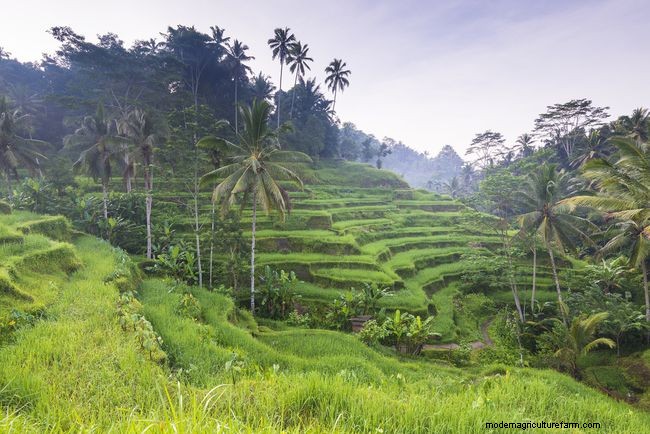 Perhaps the most well-known use of terrace farming are the rice paddies of Asia. Rice needs a lot of water, and a flat area that can be flooded is best. But a big enough area of ideal topography is hard to find, which is why the smarter way is to use terrace farming. What at first looks like unusable land for rice becomes step after step of perfect small rice fields, adding up to an impressive overall yield.