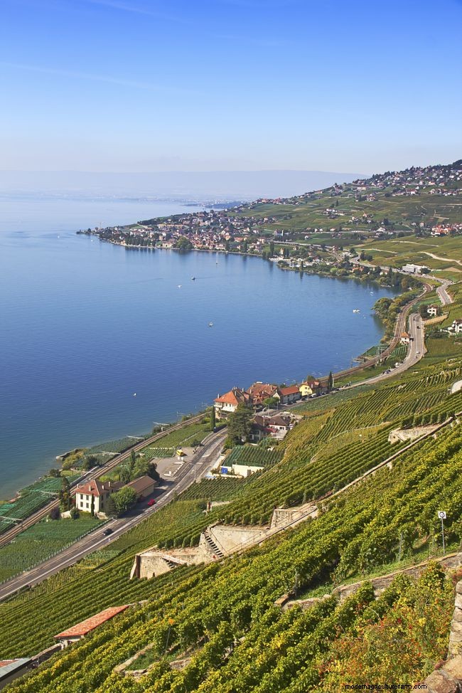 The Lavaux region in Switzerland also makes use of terrace farming for vineyards that line the north side of Lake Geneva. The terraces can be traced all the way back to the 11th century.