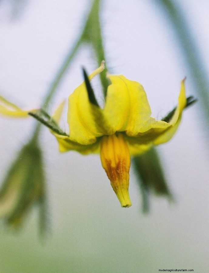 The term “bumblebee” refers to the insects of the genus Bombus under the Hymenoptera Class. Bombus terrestris is the most common species used in greenhouses. Pollination is achieved by the strong thoracic vibrations produced by the bumblebee, which are transmitted through its legs to the flowers (Picture 1). After a flower visit, the bumblebee leaves a mark on the flower which resembles a bruise (Picture 2) and is a sign of successful pollination.Picture 1 Bumblebee visit to tomato flower
