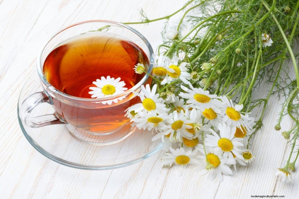 People often use flowers to make chamomile tea, but fresh green leaves and stems can also be brewed as tea or eaten in salads and dips.