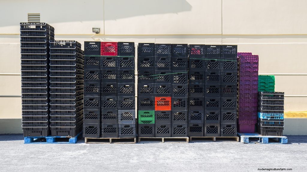 When milk crates are used to ship and store dairy products, they can be stored with up to nine full crates stacked on top of one another.
