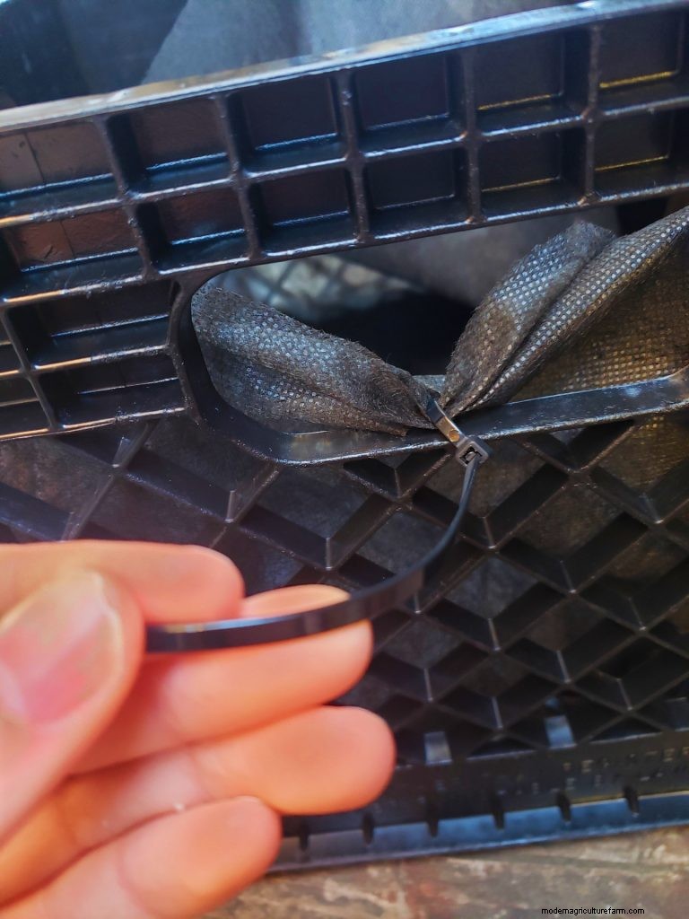 5. Thread zip ties through the holes to properly secure the fabric to the crate.