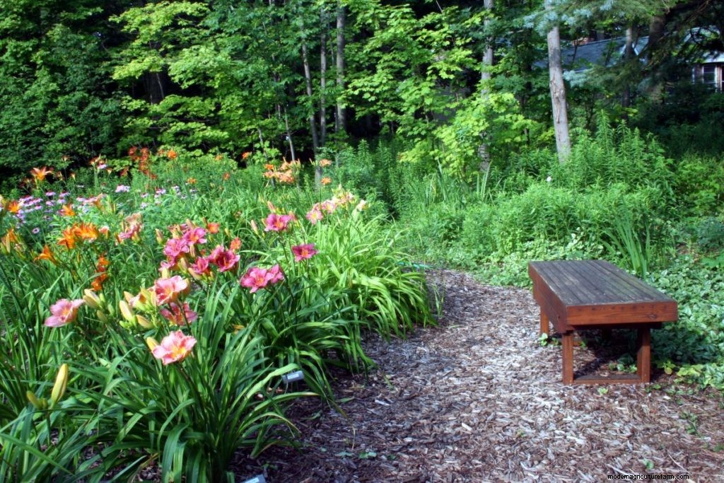A mature forest garden will contain a mixture of trees, shrubs, and ground-covering perennial plants. As plants or mulch cover the soil at all times, there is little to no weeding.