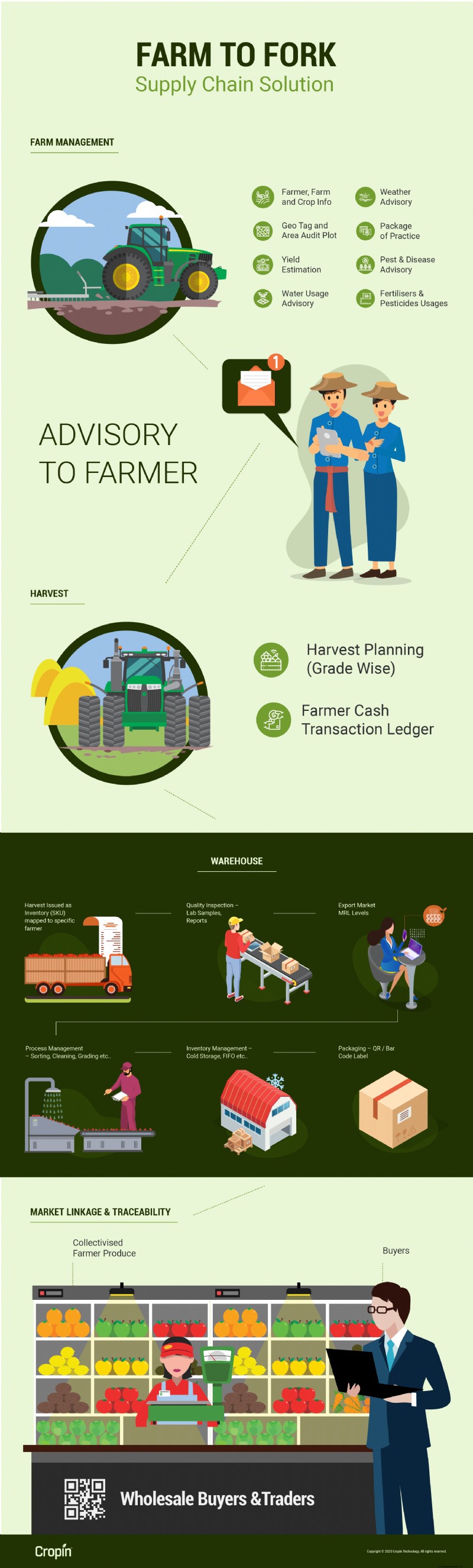 Digital farming plays a vital role in understanding crop science and improving agronomic practices to yield better outputs. Scalable and cost-efficient solutions also facilitate large and medium enterprises to pass on a tried-and-tested package of practices to farmers, particularly in developing regions, to help them adopt more scientific methods of farming. The use of agri-technology improves farm productivity and helps reduce losses due to crop stresses such as pests, diseases, and unpredictable weather conditions. As a result, farmers can realize better profits at the end of each season. ICT solutions such as Cropin’s also enables producers to meet quality standards set by international certification bodies, which further makes it a possibility for farmers to fetch a premium price for their produce.