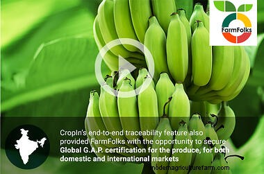 Likewise, SmartFarm was the preferred choice of a digital platform for FarmFolks Agro Pvt Ltd, a fresh produce agribusiness in Karnataka, India. The platform facilitated the enterprise to stipulate the package of practices for their banana plantations in Mysore and guide the farmers in aligning with the same. The timely advisories that the farmers received throughout the crop cycle helped the farmers optimize the application of agrochemicals, in terms of the products they use and its quantity, and reduce their cultivation cost significantly. Cropin’s end-to-end traceability feature also provided FarmFolks with the opportunity to secure Global G.A.P. certification for the produce, for both domestic and international markets.