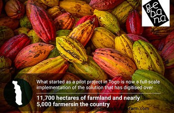 One of the finest examples of a successful implementation of SmartFarm is that of Gebana, a company that sources certified organic produce from family farmers and delivers them to consumers in Europe. What started as a pilot project in Togo is now a full-scale implementation of the solution that has digitized over 11,700 hectares of farmland and nearly 5,000 farmers in the country.