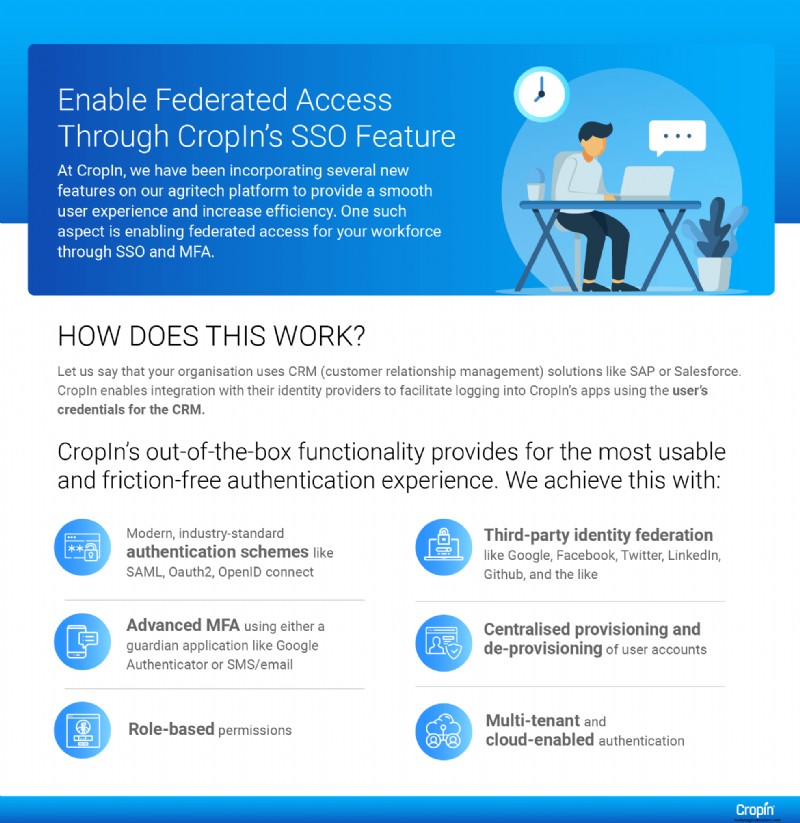 At CropIn, we have been incorporating several new features on our agritech platform to provide a smooth user experience and increase efficiency. One such aspect is enabling federated access for your workforce through SSO and MFA.