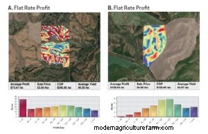 Figure 1 Profit Map B is a field also pencilled in for soft white winter wheat. In this field, there is definitely still work to do to understand the reason(s) for the low production but it might not be a field you start with if you have fields that look more like A.