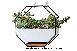 Geometric wall displays go great with contemporary and modern interior designs. The brass wire frame adds a noticeable contrast to the white luster of the ceramic planter. This unique color combination could be enough to spruce up your home and office spaces. You can easily provide accommodation for a number of small succulents such as cactus, foliage, aloe, echeveria, and haworthia – whichever makes your walls look better.