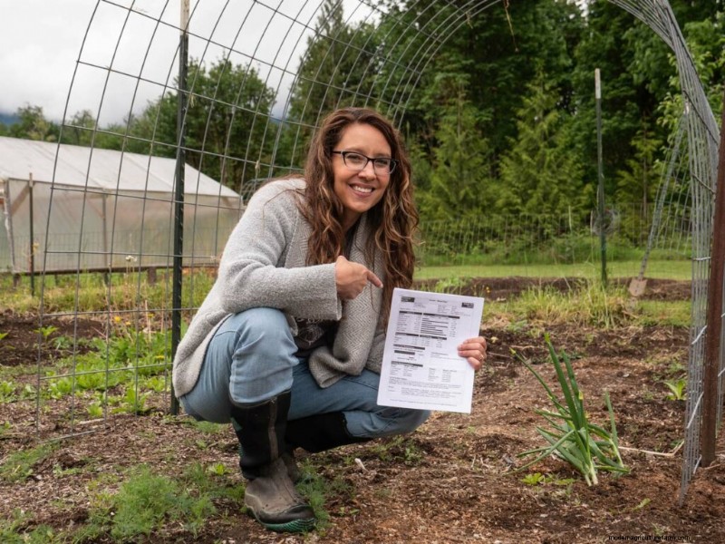 Pictured above is me pointing to my soil test results that I had done on my garden two years after adding wood chips as mulch to half our garden area. You can read this post on using wood chips in the garden and whether or not we'll be covering the other half of our garden or not.
