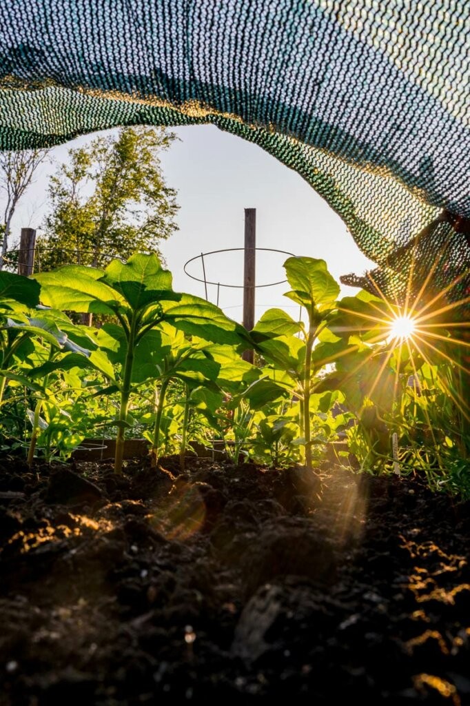 The type of shade cloths that are used for dog kennels would work quite well. This burlap shade cloth works well with multiple garden uses. We don’t always know ahead of time if it’s going to be a drought year. Long narrow rows of vegetables look neat and tidy, but they are much more susceptible to harm by drought than wide rows or blocks of vegetables.