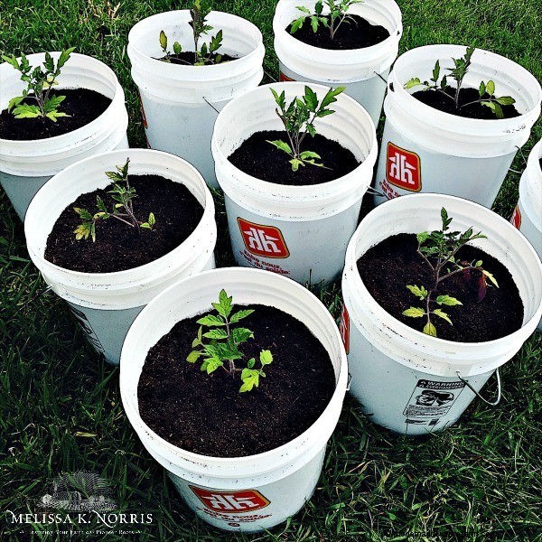 Using buckets has made it easy to expand our garden without having to dig up topsoil or build new raised beds. We add a few more per year, place them in a sunny spot in our garden and are blessed with higher and higher yields of tomatoes each year!